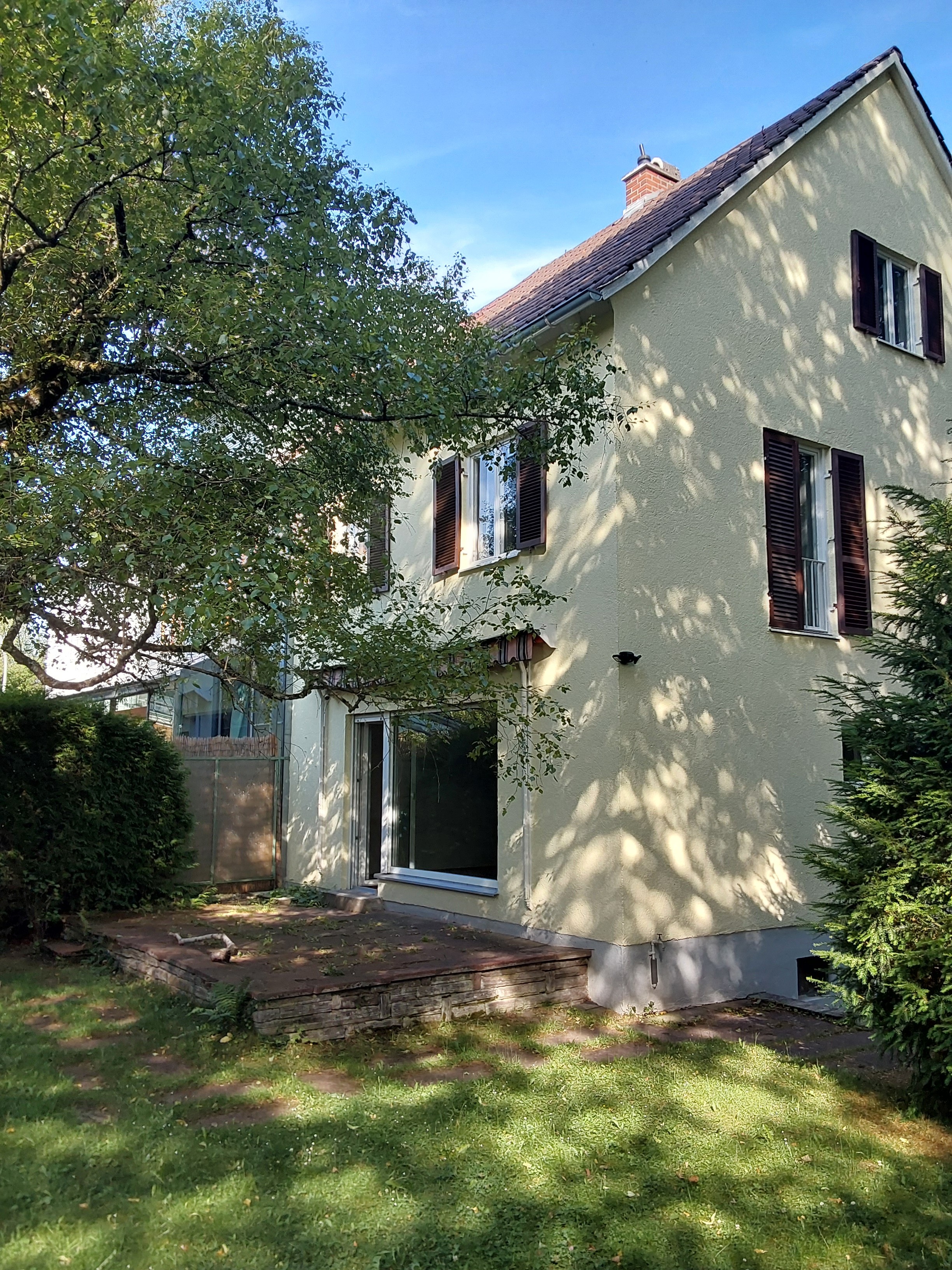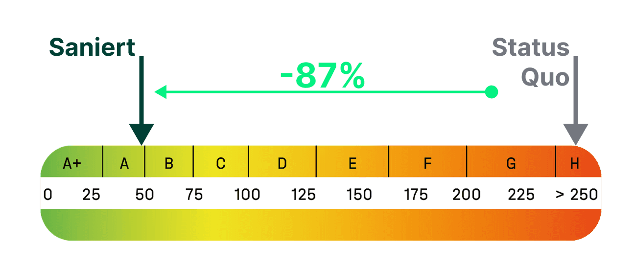 Das Reihenendhaus von 1957 wird im Zuge des Eigenheimerwerbs durch die neuen Eigentümer kernsaniert. Sanierungsstrategie und Antragstellung wurden bewusst so aufeinander abgestimmt, dass die Bundesförderung und das FKG-Förderprogramm der Stadt München parallel und optimal kombiniert werden konnten. Umgesetzt werden Dachsanierung mit Dachgeschoßausbau, Fassadendämmung, Fenstertausch und der Heizungstausch auf eine Wärmepumpe. Im Ergebnis verbesserte sich das Gebäude von Energieeffizienzklasse H auf A, die Heizkosten reduzieren sich um rund 87 % – ein deutlicher Sprung in Wohnkomfort und Wirtschaftlichkeit.