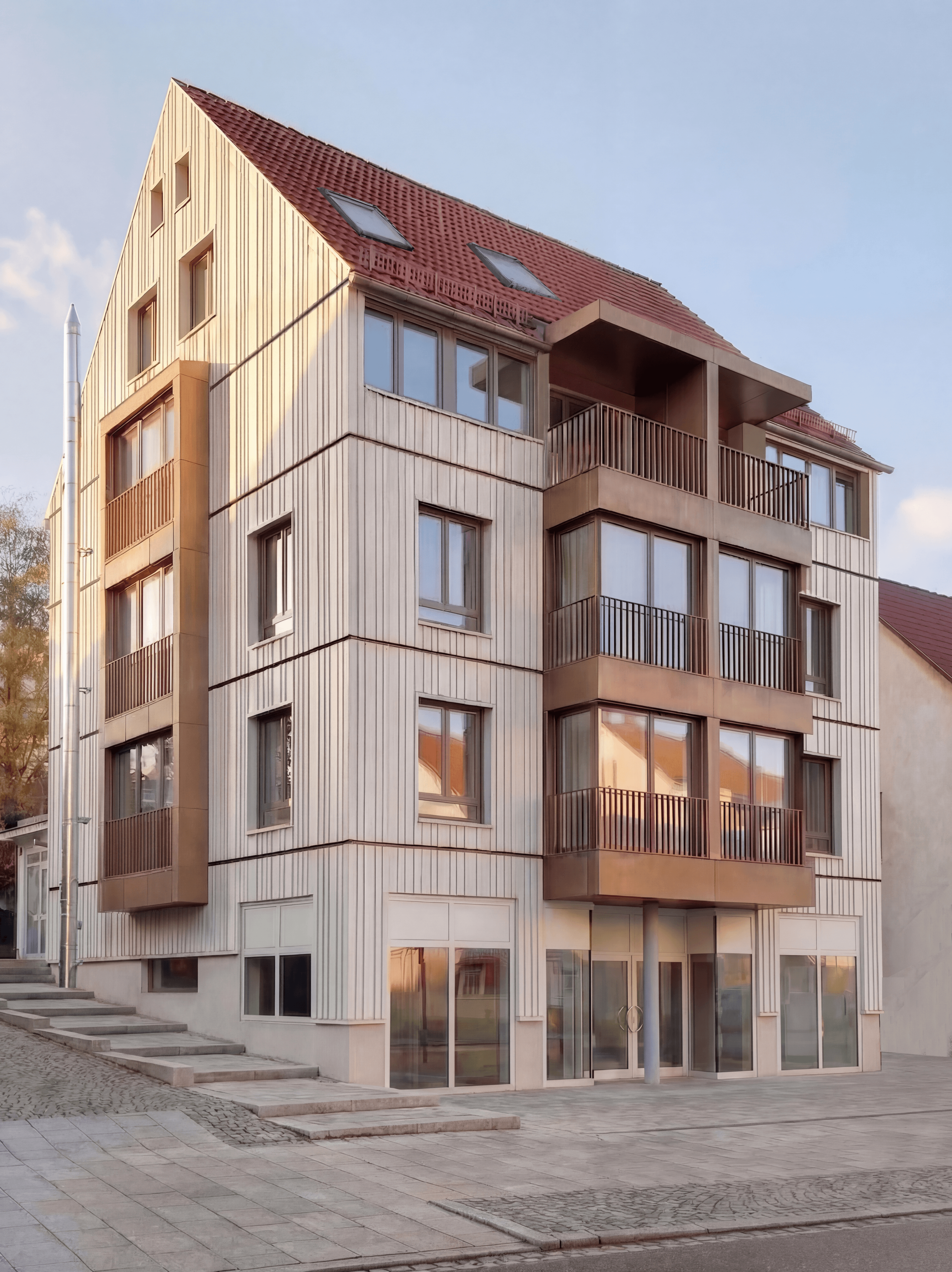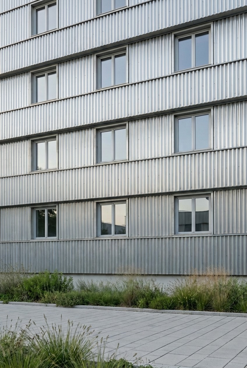 Das serielle System profitiert von der schnellen und präzisen industrieller Vorfertigung. Die neue Fassade kann mit der richtigen Auswahl und Anordnung der Bleche zum echten Hingucker werden und ein zeitgemäßen Ausdruck schaffen, der durch die Langlebigkeit des Materials lange bestehen bleibt.