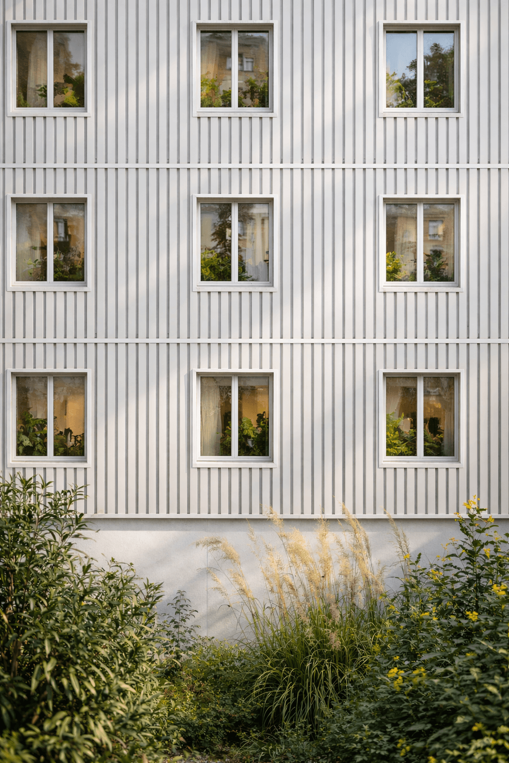 Als vorgehängte und hinterlüftete Fassade bietet es eine dauerhaft witterungsbeständige Außenhaut bei reduziertem Systemaufbau.